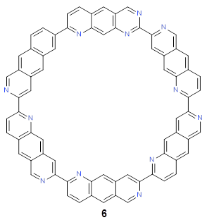 6: InChI=1S/C72H36N12/c1-2-38-14-44-20-45-25-67(73-31-50(45)13-37(1)44)57-9-4-39-15-51-32-74-68(26-46(51)21-61(39)80-57)58-10-5-40-16-52-33-75-69(27-47(52)22-62(40)81-58)59-11-6-41-17-53-34-76-70(28-48(53)23-63(41)82-59)60-12-7-42-18-54-35-77-71(29-49(54)24-64(42)83-60)72-78-36-55-19-43-3-8-56(38)79-65(43)30-66(55)84-72/h1-36H