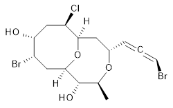 1: InChI=1S/C15H21Br2ClO4/c1-8-15(20)14-6-10(17)12(19)7-11(18)13(22-14)5-9(21-8)3-2-4-16/h3-4,8-15,19-20H,5-7H2,1H3/t2-,8-,9+,10-,11+,12+,13+,14+,15-/m0/s1