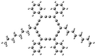 Since the rings are composed of 18 π-electrons in the π-system perpendicular to the nearly planar ring, the natural question is to wonder if the ring is aromatic. The authors computed NICS(0) and NICS(1) values at the center of the C18 rings. For all four compounds, both the NICS(0) and NICS(1) values are negative, ranging from -12.4 to -14.9 ppm, indicating that the rings are aromatic.