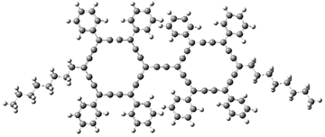Interesting 18 π-electron systems involving cyclooctadecanonenetriyne rings have been synthesized and examined by computations.1 The mono-, di- and tri-C18