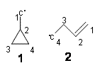 I seem to be recently flooded with papers dealing with tunneling in organic systems. Well, here’s one more! Kozuch, Borden, Schreiner and co-workers seek out systems whereby isotopic substitution might lead to reaction selectivity.1 Their base system is cyclopropylmethylcarbene 1, which can undergo three different reactions: (a) the ring can expand to give 1-methylcyclobut-1-ene 2, (b) a hydrogen can shift from the terminal methyl group to give vinylcyclopropane 3, or (c) the methane hydrogen can shift to produce ethylidenecyclopropane 4. This last option can be neglected since its barrier (20.5 kcal mol-1) is so much higher than for the other two, 7.5 kcal mol-1 for the ring expansion and 12.1 kcal mol-1 for the [1,2]H-shift converting 1 → 3.