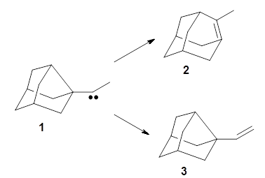 They examine a number of different substituents that may help to lower the barrier for the ring expansion. The methoxy derivative 5 turns out to suit the bill perfectly. The methoxy group reduces the barrier for ring expansion from 7.5 kcal mol-1 with 1 to 2.5 kcal mol-1 with 5. With hydrogenated 5, the [1,2]H-shift is 103 times faster than ring expansion, but with deuterated 5, ring expansion is twice as fast as the deuterium migration.