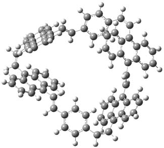 The conversion of 1 to 2 takes place through the transition state TS-1c2b that actually connects isomer 1c to 2b. This structure, shown in Figure 1, exhibits little bond alternation and has a NICS(0) value of -14.2, both strongly suggestive of Möbius aromatic character. Aromaticity should also imply energetic stabilization; TS-1c2b lies only 13.7 kcal mol-1 above 1a. This barrier is less than that predicted for the twist-coupled bond shift in either [10]annulene or [12]annulene.
