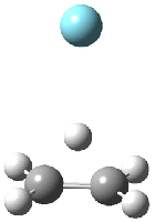 Figure 1. MP2/6-311+ Table 1. Relative energies (kcal mol-1) and frequencies of protonated acetylene Rel E Frequencies (scaled) H+(acetylene)Ar non-classical 0.0 3139, 2123 H+(acetylene)Ar classical 7.8 3084, 2954, 2878, 1673 H+(acetylene) non-classical 0.0 3219, 2250 H+(acetylene) classical 7.1 3162, 29947, 2874 Experiment 3364, 3212, 3146, 2217 The argon tag only slightly perturbs the spectrum, as expected for a weakly bond atom remote from most of the hydrogen atoms. The predicted spectra of the two non-classical ions are in nice agreement with the experiment – particularly the interesting peak at 2123 cm-1 that is due to the bridged proton. This spectra, and the confirmation of the bridging, non-classical structure, makes a nice pair with the recently reported bridging, non-classical structure of the ethyl cation,3 which I blogged on previously. The spectrum of the H+(C4H4) ion show a doublet at 3129 and 3158 cm-1 and two small peaks at 1261 and 1365 cm-1. The computed structure that comes closest to matching this spectrum is for the asymmetrically bridged dimer (See Figure 2), though is much more energetic than its isomers. The authors speculate that the bridged dimer is trapped in an energy-well during the thermal expansion, which prevents the formation of the lower energy isomers. Figure 2. Schematic drawing and relative energies of the H+(C4H4) ion. (1) Douberly, G. E.; Ricks, A. M.; Ticknor, B. W.; McKee, W. (2) Gabrys, C. M.; Uy, D.; Jagod, M. F.; Oka, T.; Amano, T., "Infrared Spectroscopy of Carboions. 8. Hollow Cathode Spectroscopy of Protonated Acetylene, C2H3+," J. Phys. Chem., 1995, 99, 15611-15623, DOI: 10.1021/j100042a042. (3) Andrei, H.-S.; Solcà, N.; Dopfer, O., "IR Spectrum of the Ethyl Cation: Evidence