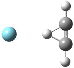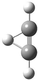 Duncan and Schleyer1 have investigated protonated acetylene and the protonated acetylene dimer. These ions are created in a pulsed supersonic nozzle/pulsed electrical discharge with a weakly bound argon atom as a tag. IR laser photodissociation spectroscopy allows for the detection of peaks down to 2000 cm-1, a region not previously explored for this cation. The experimental IR spectrum for H+(C2H2).Ar has two main features: at 3146 and 2217 cm-1. The 3146 cm-1 corresponds to the previously observed peak2 at 3142 cm-1 and is similar to the absorption in acetylene (3136 cm-1). MP2/6-311+G(2d,2p) computations were performed on the classical and non-classical structures of H+(C2H2), with and without a complexed argon atom. These geometries are displayed in Figure 1 and the predicted vibrational frequencies are listed in Table 1.