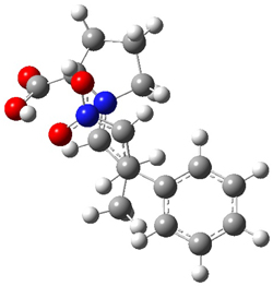 The possible TSs for Reactions 5-7 were also located. For example, with Reaction 5, the lowest energy TS involves the imidazole as the hydrogen donor and it leads to the major product. The lowest energy TS that leads to the minor product involves the carboxylic acid as the donor. The computed ee’s for Reactions 5-7 are in very good, if not excellent, agreement with the experimental values. The study should spur further activity in which one might tune the stereoselectivity by using catalysts with multiple binding opportunities.