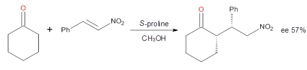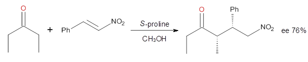 Yang and Wong2 investigated the proline-catalyzed nitro-Michael reaction, looking at four examples, two with aldehydes and two with ketones (Reactions 1-4).