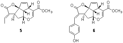 5: InChI=1/C16H18O5/c1-3-8-11-6-12-13-9(10(7-20-12)14(17)19-2)4-5-16(11,13)21-15(8)18/h3,7,9,11-13H,4-6H2,1-2H3/b8-3+/t9-,11-,12-,13-,16-/m1/s1