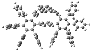 2: InChI=1/C82H52/c1-9-25-53(26-10-1)71-73(55-29-13-3-14-30-55)77(59-37-21-7-22-38-59)81-67-49-63-45-47-65-51-68(52-66-48-46-64(50-67)69(63)70(65)66)82-78(60-39-23-8-24-40-60)74(56-31-15-4-16-32-56)72(54-27-11-2-12-28-54)76(58-35-19-6-20-36-58)80(82)62-43-41-61(42-44-62)79(81)75(71)57-33-17-5-18-34-57/h1-52H/b79-61-,80-62-,81-67-,82-68-