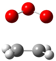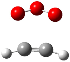 Wheeler, Ess, and Houk have examined the cycloaddition of ozone with ethyne (Reaction 1) and ethane (Reaction 2) with a variety of different computational techniques.1 Shown in Figure 1 are the CCSD(T)/cc-pVTZ optimized geometries of the pre-complex, transition state and product for both reactions. One of the potential challenges of these reactions is that ozone has appreciable radical character which is also likely to be true in the pre-complex and transition state but the product should have little to no radical character.