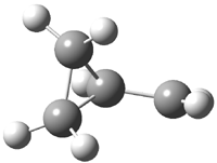 His latest article examines carbon tunneling,4 which, due to the much heavier mass of the carbon nucleus relative to a proton, is likely to play a minimal role at best. Borden looked at the ring opening of cyclopropylcarbinyl radical 1 to 3-butene-1-yl radical 2, passing through transition state TS1-2. The B3LYP/6-31G(d) optimized structures are shown in Figure 1.