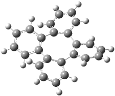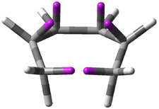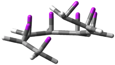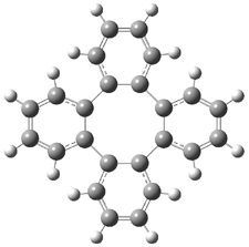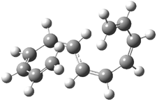 Mauksch and Tsogoeva report on the novel electrocylization of (3E,5E,7E,9E)-1,3,5,7,9,11-dodecahexaene (1), the fourth topology type (Fig 1d).1 Here the molecule has the Möbius topology and there is one phase inversion. Figure 2 displays the geometries of the reactant 1, the electrocyclization transition state 2, and the product 3. The activation barrier is 35.7 kcal mol-1. The NICS value at the center of the ring of the transition state is -12.8ppm , indicative of aromatic character, which is supported by the very small variation of the C-C distances (less than 0.02 Å).