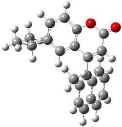 The method, called DP4, works as follows. First, perform an MM conformational search of every diastereomer. Select the conformations within 10 kJ of the global minimum and compute the 13C and 1H NMR chemical shifts at B3LYP/6->31G(d,p) – note no reoptimizations! Then compute the Boltzmann weighted average chemical shift. Scale these shifts against the experimental values. You’re now ready to apply the DP4 method. Compute the error in each chemical shift. Determine the probability of this error using the Student’s t test (with mean, standard deviation, and degrees of freedom as found using their database of over 1700 13C and over 1700 1H chemical shifts). Lastly, the DP4 probability is computed as the product of these probabilities divided by the sum of the product of the probabilities over all possible diastereomers. This process is not particularly difficult and Goodman provides a Java applet to perform the DP4 computation for you!