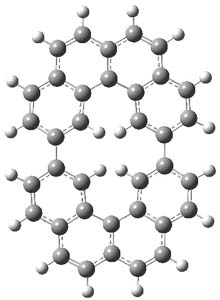 The M06-2x/6-31++G** geometries of 1 and its dianion 12- are shown in Figure 1. 1 can be thought of as two naphthalenyl groups joined together by single bond (their distance is 1.479 Å). In the dianion, the bond distance between the two naphthyl groups (making the central 6-member ring) is shorter, 1.425 Å. In addition the C-C(O) bond of the imide ring shortens from 1.485 to 1.441 Å in going from the neutral to the dianion, with the C=O bond also lengthening, from 1.214 to 1.243 Å. These geometric changes suggest the formation of an aromatic central six-member ring, and perhaps some aromaticity in the diimide rings, too.