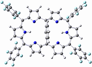 Osuka, Sim and coworkers have examined the geometrically constrained hexphyrins 1 and 2.2 1 has 26 electrons in the annulene system and thus should be aromatic in the ground state, while 2, with 28 electrons in its annulene system should be antiaromatic. The ground state and lowest triplet structures, optimized at B3LYP/6-31G(d,p), of each of them are shown in Figure 1.