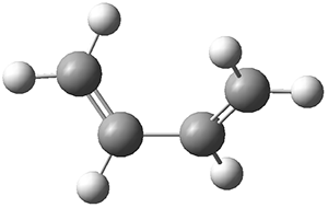 Sometimes you run across a paper that is surprising for a strange reason: hasn’t this work been done years before? That was my response to seeing this paper on the structure of gauche-1,3-butadiene.1 Surely, a molecule as simple as this has been examined to death. But, in fact there has been some controversy over whether the cis or gauche form is the second lowest energy conformation. Computations have indicated that the cis form is a transition state for interconverting the two gauche isomers, but experimental confirmation was probably so late in coming due to the small amount of the gauche form present and its small dipole moment.