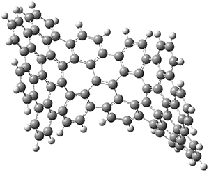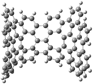 The PES is significantly simpler for the structure lacking the t-butyl groups, 2. The B3LYP/6-31G PES of 2 has the saddle as the transition state interconverting mirror images of the twisted saddle isomer, and this barrier is only 1.8 kcal mol-1. Figure 1 displays the twisted saddle and the saddle transition state. Clearly, the t-butyl groups significantly alter the flexibility of this C86 aromatic surface. One should be somewhat concerned about the small basis set employed here, especially lacking polarization functions, and a functional that lacks dispersion correction. However, the computed geometry of 1 is quite similar to that of the x-ray structure.