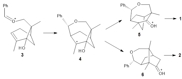 The first paper2 discusses the warped aromatic 1 built off of the scaffold of depleiadene 3. The crystal structure of 1 shows the molecule to be a saddle with near C2v symmetry. B3LYP/6-31G computations indicate that the saddle isomer is 10.5 kcal mol-1 more stable than the twisted isomer, and the barrier between them is 16.0 kcal mol-1, with a twisted saddle intermediate as well.